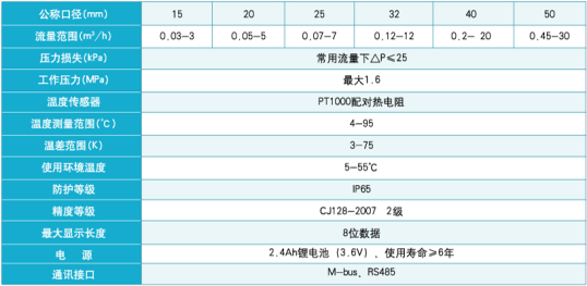 詳細說明: 該熱能表采用無磁流量采集,采集數(shù)據(jù)更加精 確,且不受水質(zhì)中鐵屑、鐵銹及外界磁場等問題的影響。適用于普通民用住宅、辦公樓等集中供暖/制冷的熱(冷)量計量收費。 功能特點: ○ 全中文菜單顯示熱(冷)量值、進回水溫度、溫度差、累計流量,清晰直觀。 ○ 進、回水管道任意安裝、使用維修方便,具有防塵、防潮、防拆卸、抗強磁攻擊等功能。 ○ 進口芯片設計,采用國際 的微功耗處理技術,正常使用狀態(tài)下功耗低于10μA,保證更長的使用壽命。 ○ 符合JJG225-2001熱量表檢定規(guī)程及CJ128-2007熱量表標準,可選用紅外/RS485通信輸出,實現(xiàn)數(shù)據(jù)遠傳,集中控制. ○ 內(nèi)置高容量環(huán)保鋰電,電池保用6年以上.